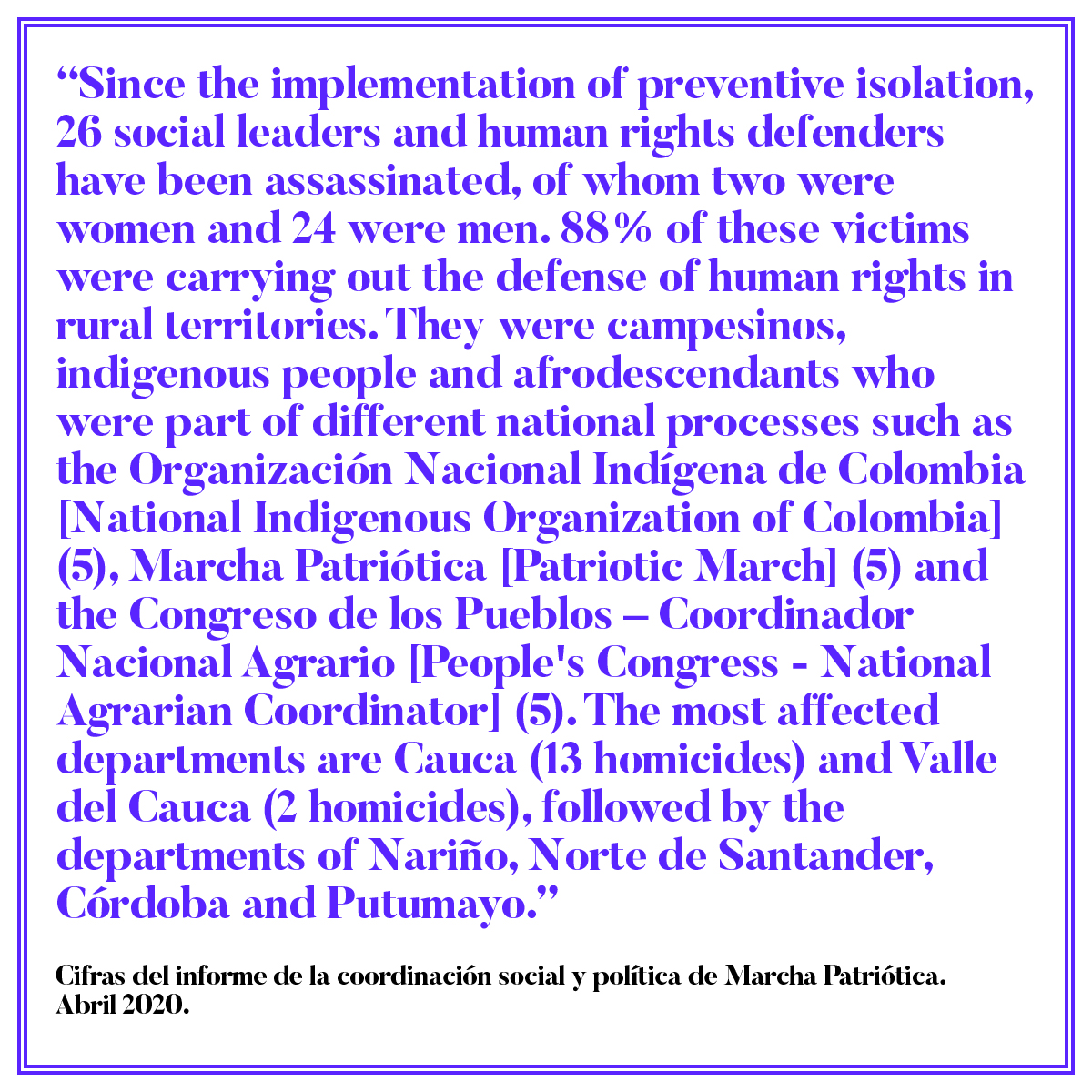 We are a group of indignant citizens over this situation, who are generating images, memes and videos so that they can rotate through the network and social media and counteract the invisibility to which the communities of Cauca are subjected due to the COVID-19 health crisis. As so we can express our solidarity with the adverse circumstance to which they are subjected.
